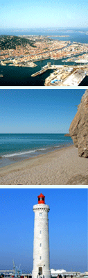 Sie liegt auf einer schmalen Landzunge, zwischen dem Etang de Thau und dem Mittelmeer. Es ist also von allen Seiten mit Wasser umgeben.